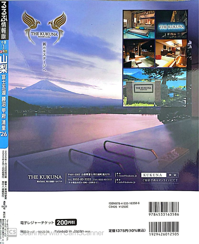 “るるぶ (Rurubu)” adalah seri buku panduan wisata Jepang yang sangat terkenal, diterbitkan setiap tahun untuk berbagai prefektur. Buku ini khusus membahas Prefektur Yamanashi, termasuk area Gunung Fuji, Danau Kawaguchi, Kofu, dan Kiyosato.